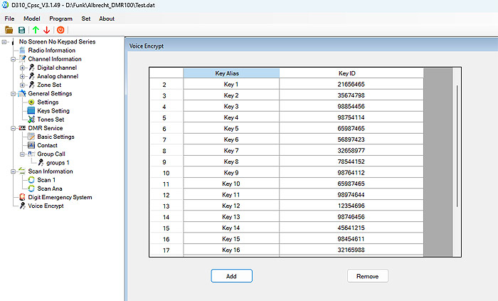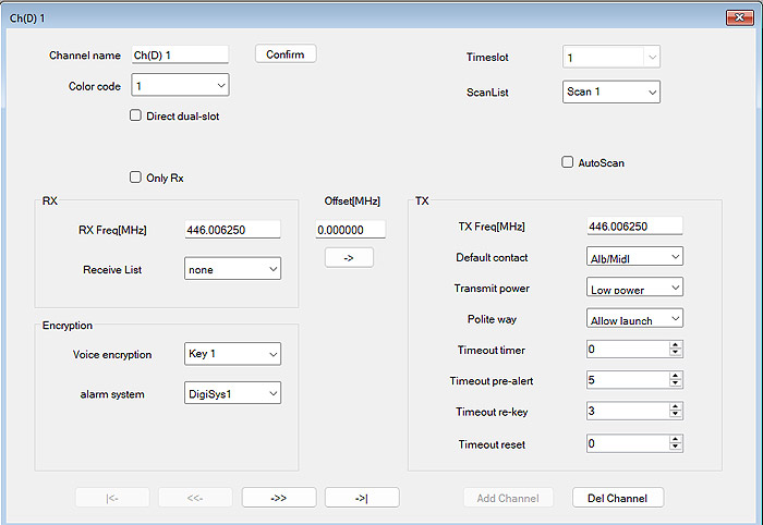 Besonders genial finde ich die Möglichkeit die Aussendungen digital auf DMR zu verschlüsseln. Halt für die Fälle, dass Gespräche privat bleiben sollen. Ich kann hier zum Beispiel jedem der 16 DMR-Kanäle, je einen 8-stelligen Zahlencode hinterlegen und schon sind meine Aussendungen sicher vor anderen Zuhörern. Das alles und noch viel mehr ist dann über die Programmiersoftware zu konfigurieren.