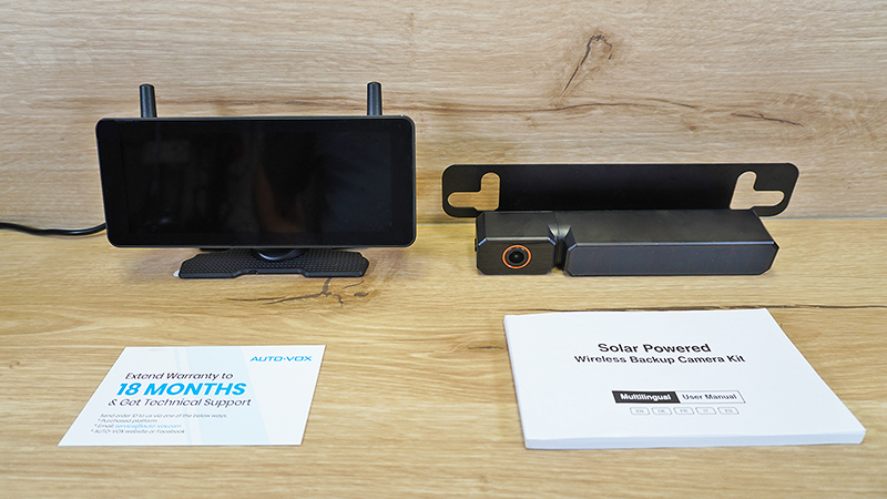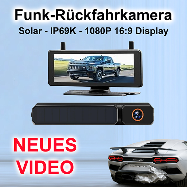mit einem schönen großen 7,2 Zoll 1080P Bildschirm in HD-Qualität. Die Übertragung des Bildsignals von Kamera zum Bildschirm geschieht hier über Funk. Die Kamera selbst ist mit einem Weitwinkelobjektiv ausgestattet und bietet somit einen sehr guten Überblick über das Geschehen hinter dem Auto.